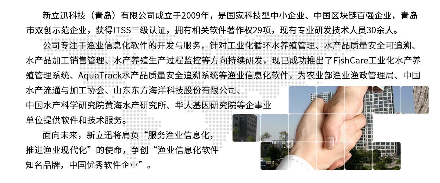 FishCare工業化水產養殖管理系統基于物聯網和云計算技術開發(fā),集成智能傳感器和自動化控制裝備等硬件設施,組建無線傳感器網絡,解決了水產養殖水環(huán)境監(jiān)控的瓶頸,對水產養殖生產全過程實現監(jiān)控和管理,為水產養殖企業提供定制化開發(fā),提升管理水平,降低生產成本,填補了國內水產養殖企業專業生產管理軟件的空白。